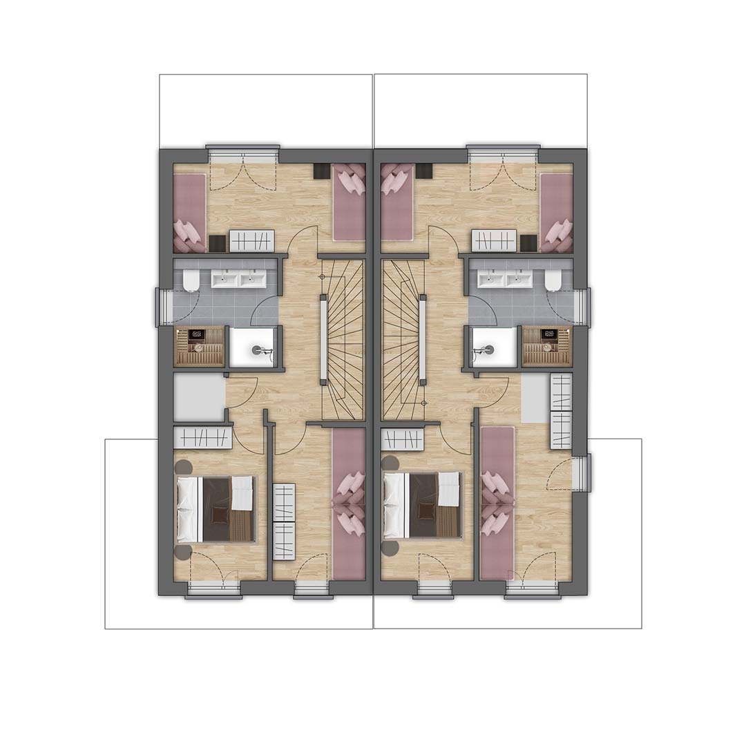 22 Doppelhäuser mit ca. 110 m² bis 167 m² Wfl. je Doppelhaushälfte